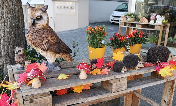 ... unsere gute Blumenfrau hat neben Blumen und Pflanzen, auch Eulen und Igel im Angebot ...