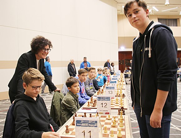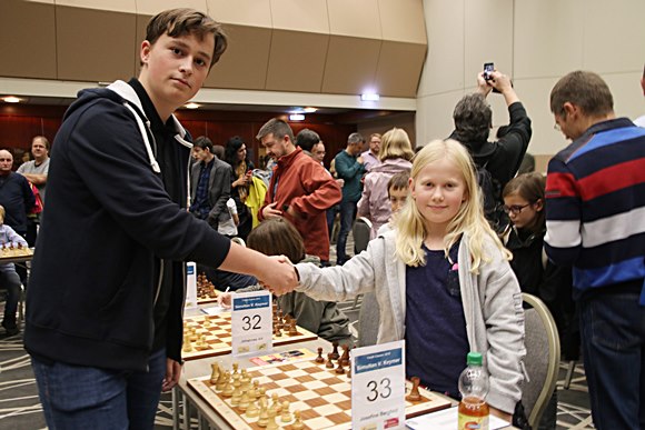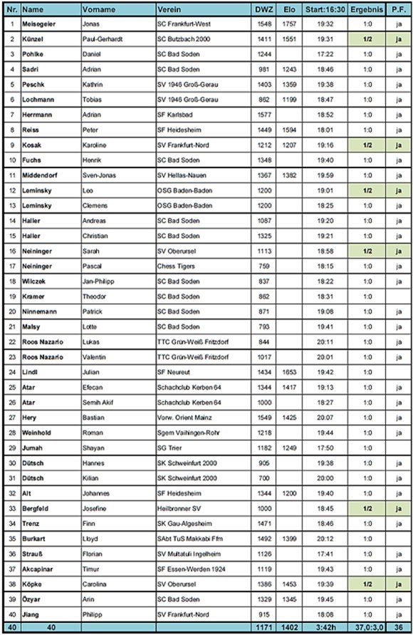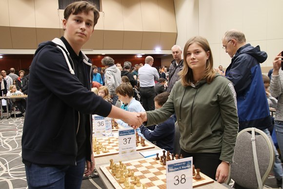"Das 40er-Simultan mit Vincent Keymer" Caroline vom SV Oberursel machte das Remis auch nach einer soliden Partie perfekt und war im Youth Classic Juniors Open (U18) das beste Mädchen. In der Statistik des Simultans wird stehen: von den sechs Remis wurden von den Mädchen Karolina (SV Frankfurt-Nord), Sarah (SV Oberursel), Josefine (Heilbronner SV) und Caroline (SV Oberursel) insgesamt 66,7% der Punkte erobert. Bei den Jungs hatten mit Paul-Gerhardt (SC Butzbach 2000) und Leo Leminsky (OSG Baden-Baden) nur 33,3% der Punkte erreicht. Vincent, Vincent, wenn da mal einer was merkt bei der Fan-Betreuung!