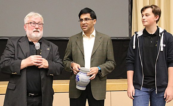 18.10.2019 - Isle of Man 2019 - eines der stärksten Turniere aller Zeiten im Swiss Chess Format. Wer im freien Spiel der Kräfte stand hält gegen Gegner mit den Elo-Zahlen 2669 (½), 2667 (½), 2662 (1), 2663(½), 2670 (½), 2708 (0), 2651 (½), 2634 (0) und 2644 (½) der braucht sich um seine Zukunft keine allzugroßen Sorgen zu machen, nur den halben Punkt kann er jetzt machen - die Chance für die 3.GM-Norm ist zum Greifen nah! Das Stahlbad dieser Turniere hält alle Facetten des "Himmel hoch jauchzend & zu Tode betrübt" bereit. Es ist eigentlich der richtige Weg für Erwachsene an die Weltspitze. Für den Weg von Schülern und Jugendlichen fordern immer wieder Sportpsychologen den kindgerechteren Weg mit vielen Etappen bei nationalen und internationalen Jugend-Meisterschaften. Aber mal sehen, welcher Weg eher zum Ziel führt, der von Vincent oder der von R. Praggnanandhaa. Einen Riesenvorteil hat Vincent sich schon jetzt erspielt beim Doppelsimultan seiner Chess Tigers in Bad Soden am Taunus. Die Herzen seiner weiblichen Fans schlagen höher, wenn sie den noch 14-jährigen Vincent um ein Autogramm bitten. Charlotte, Lotte, Mathilda und Riyanna himmeln geradezu den besten Schach-Botschafter in Deutschland an! Mag es hier die erwachsene Zukunft der jugendlichen Fans sein, so ist es bei seinem congenialen Partner Viswanathan Anand die Ehrfurcht vor seiner späten Schachweltmeisterschaft, bei dem ihn die "Three Big Ks" Kasparov, Karpov und Kramnik schon bis zum Äußersten forderten. Aber der Tiger von Madras "Vishy" hat es geschafft und der Tiger aus der Region Rhein-Main-Taunus (Saulheim) wird es auch schaffen!