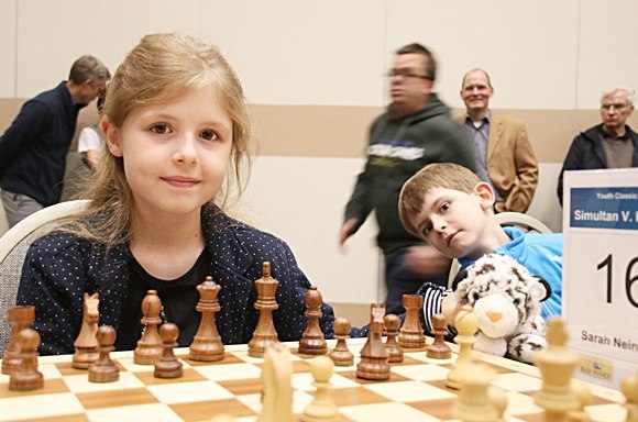 "Das 40er-Simultan mit Vincent Keymer" Die erfolgreiche Hessen-Kader-Spielerin Sarah sorgte für ein Ausrufezeichen, weil sie in Gegenwart von Bruder und Vater ein Remis ohne große Aufregung erreichte. Im Kids-Open konnte sie sich an der Spitze der Tabelle mit 7,0 Punkten aus 9 Partien etablieren und bekam den 3.Preis.