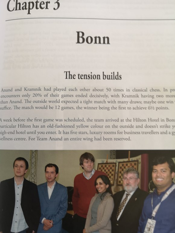 03.12.2019 - Auszug aus dem Vorwort von Viswanathan Anand: - Als ich gebeten wurde, dieses Buch zu überprüfen, hat es mir sehr gefallen. Für mich war es eine Reise in die Vergangenheit. Der unglaubliche Detaillierungsgrad bedeutete, dass ich nicht nur über drei Matches las, die ich sehr gut kannte - oder Reiseroute, wenn man so will - , sondern auch ständig an Dinge erinnert wurde, die ich vergessen hatte oder die aus dem Gedächtnis verschwunden waren. Heute erinnere ich mich gut an die allgemeinen Trends der Matches: den Fluss der Emotionen, die Euphorie, die Enttäuschungen, was funktionierte und was nicht. Allerdings, um sich es fast täglich vorzustellen und um uns daran zu erinnern, worüber wir uns vor einem Spiel Gedanken gemacht haben und was während eines Spiels passiert ist - ich muss sagen, dass meine Erinnerung an viele dieser Ereignisse verblasst war! ... ... dieses Buch erfüllt die einzigartige Aufgabe, fabelhafte Einblicke in die Funktionsweise eines Teams zu erhalten und gleichzeitig die Balance der Perspektive des Außenstehenden zu halten. Jemand, der von draußen dieses Format sieht und nicht versucht diese oder jene Entscheidung zu verteidigen oder diese oder jene Ereignisse von einem einzigen Moment abhängig zu machen versteht besser!