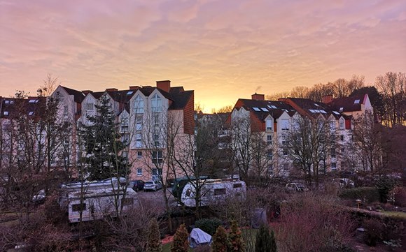 ... alles entblättert - Wohnwagen im Winterschlaf - Abendrot!