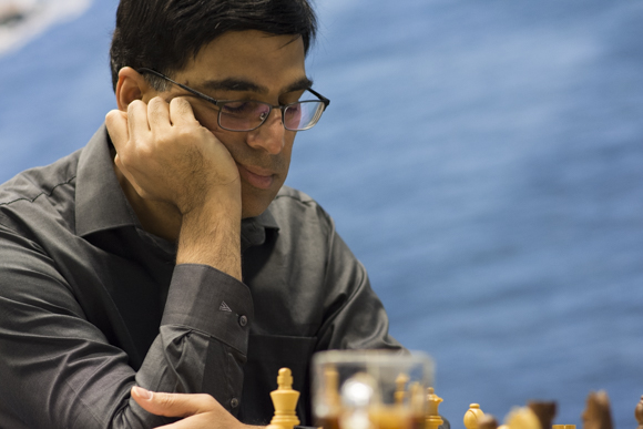 Schlüsselmoment war dann die bereits erwähnte Partie gegen Fabiano Caruana in der 8.Runde. Im 16. Zug gab Fabian eine Qualität ab, für ein starkes Läufer -Springer Tandem, unterstützt von einem ebenfalls starken weißen Bauernzentrum. Nach dem Damentausch erspielte sich Vishy sogar einen deutlichen Vorteil, den er leider vergab. Im 53.Zug verpasste Vishy sogar noch den einzigen Remiszug und verlor die Partie.