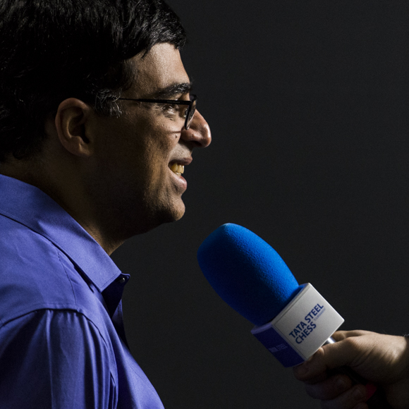 Aber insgesamt zufrieden und gut gelaunt gab Vishy Interviews, wie hier mit dem Journalisten des Veranstalters.