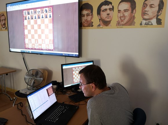 Großmeister Michael Prusikin bei seiner Lieblingsbeschäftigung