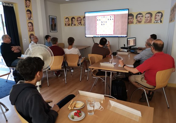 27.06.2022 - Knapp zweieinhalb Jahre konnten wir unseren aus der Ukraine stammenden Lehrmeister Michael Prusikin nicht mehr in Bad Soden begrüßen. Der einzige verfügbare Termin am 18.-19.Juni 2022, den wir bei dem vielbeschäftigten Schachtrainer und Bundesligaspieler Prusikin ergattern konnten - obwohl nebenan das traditionelle Rhein-Main-Open bei unseren Freunden vom SK Bad Homburg lief und auch die DSAM in Darmstadt erstmals stattfand. Einige angemeldete Teilnehmer zogen dann die selten gewordenen Turniere vor und zwei Teilnehmer sagten die angedrohten Temperaturen von 37 Grad nicht so ganz zu. Trotzdem konnten wir mit überzeugender Lüftungsstrukturen mittels Ventilatoren für ganz gute Bedingungen sorgen, sodass im Bewertungsbogen Conni Schmitt mit 1,06 (Drinks & Snacks) und GM Michael Prusikin mit 1,06 (Thema getroffen und Eingehen auf Fragen) Höchstwerte erzielt werden. "Alles in Allem" ein großartiges Seminar und das nächste soll am 29.-30.Oktober diesen Jahres (nach den Herbstferien) mit GM Dr. Karsten Müller folgen. Thema: Weltmeister Magnus Carlsen noch stärker mit Alpha Zero und Ki (Künstlicher Intelligenz). Zweites Weltmeister Magnus Carlsen Seminar nach 2015!!