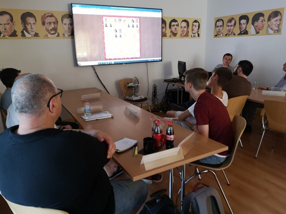 Wie immer war GM MIchael Prusikin voll bei der Sache und konnte trotzdem mit großem Tempo sein ganzes Strategie-Wissen übertragen - allerdings hin und wieder zur großen Überraschung der "langsamen" Neuerkenntnis-Gewinner wurde mancher der 16 Teilnehmer von den profunden Kenntnisse anderer keine Ungeduld oder Druck an den Tag gelegt beim Lernfortschritt.
