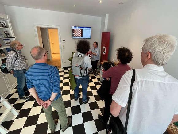 Nach diesem durchaus emotionalen Abschnitt besichtigten die Gäste, zu denen sich immer wieder neue Schachfreunde gesellten, die komplett renovierten und neu konzipierten Räumlichkeiten und griffen ordentlich bei den zahlreichen Schachutensilien zu.