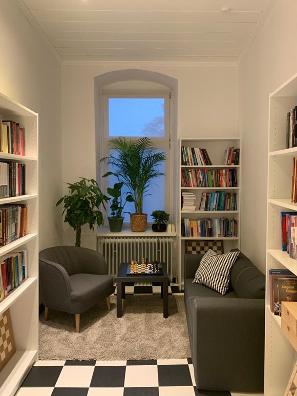 Im Laden wurde weiterhin fleißig das Sortiment begutachtet und die Gespräche wurden ausführlicher und intensiver. Wann hat man schon mal die Gelegenheit sich von einem internationalen Meister zu Schachbücher beraten zu lassen? Und so gingen die Stunden dahin, für das Team der glücklichen Schachladen-Neuinhaber wie im Flug. Als dann die ausgeliehenen Biertische und Bänke bereits wieder zum Getränkemarkt gebracht waren, die Küche nicht mehr wie ein Schlachtfeld aussah und die Anspannung langsam der Zufriedenheit wich, kam eineinhalb Stunden nach offiziellem Ende der Eröffnungsfeierlichkeiten noch ein letzter Schachbegeisterter in den Laden. Er wäre gerne schon früher gekommen, musste aber arbeiten und sei sehr dankbar, dass er jetzt noch eine Runde Schach shoppen kann. Sollte sich in den anstrengenden Wochen der Renovierung irgendwann mal die Frage gestellt haben, warum man sich das alles antut, war in diesem Moment auch diese Frage beantwortet.
