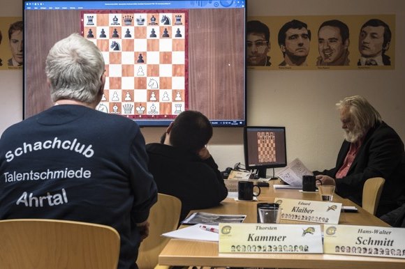 Dariusz Gorzinski (Kreativ-Fotograf im Hintergrund) im besonderen Blick eines (brut force) Schachdenkers - kann schon mal zum Verlust des Haupthaares führen.