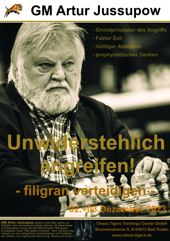Seminare / Training FIDE Senior Trainer - GM Artur Jussupow Unwiderstehlich Angeifen - filigran Verteidigen - was sonst? Der Großmeistertrainer zeigt sein großes Können auch ohne Tipps einer Engine den begeisterten Amateuren ...