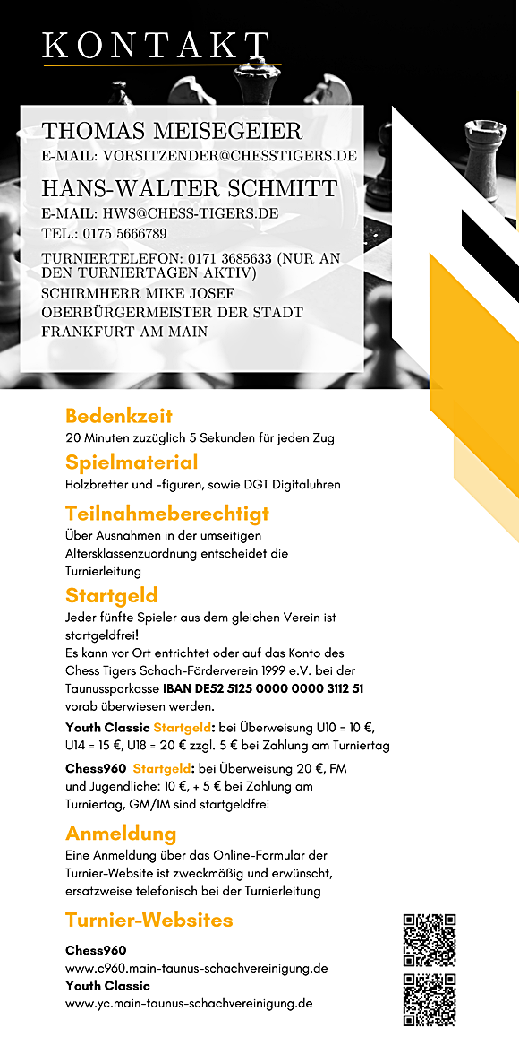 Eine große Fortsetzung erfordert ein starkes Planungs- und Realisierungsteam. Mit dem Veranstalter Chess Tigers Schach-Förderverein 1999 e.V. und den Ausrichtern SC Frankfurt-West e.V. und der Main-Taunus-Schachvereinigung e.V. sind wir gut aufgestellt.