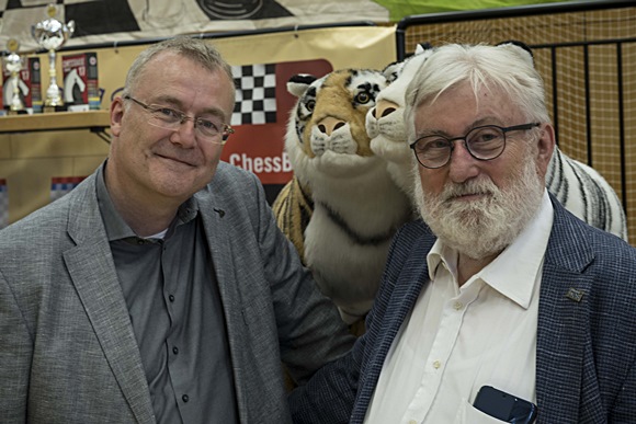 Große Bühne: Sponsor ChessBase Rainer Woisin & Veranstalter Hans-Walter Schmitt