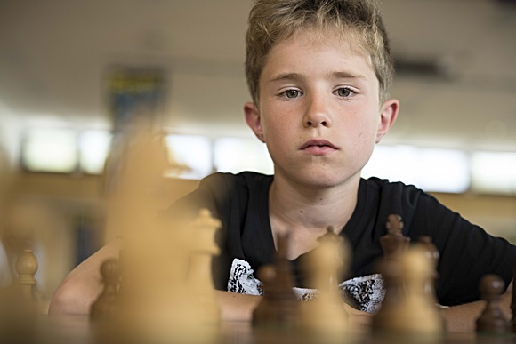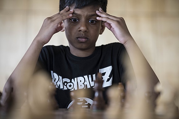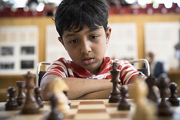 Simultan GM Klaus Bischoff gegen den Bad Sodener U10-Spitzenspieler Nirsinhbhan (Niko) Bhosale 1:0