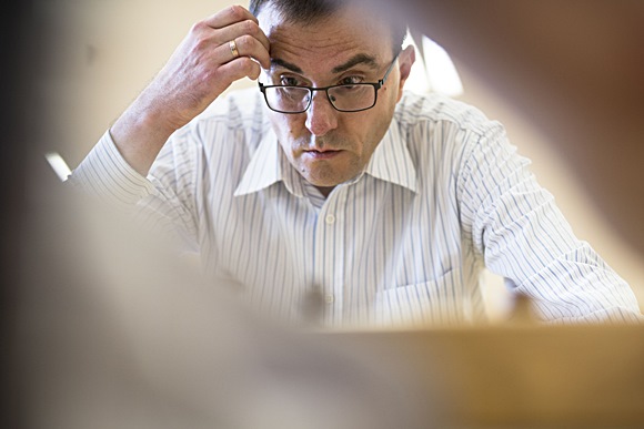 Simultan GM Michael Prusikin - Turnierleiter Dirk Windhaus mutig, aber trotzdem 1:0