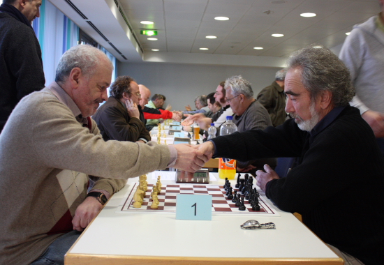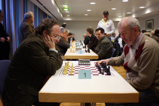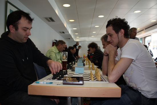 ... FM Oliver Uwira (links), der bereits in der ersten Runde gegen Tobias Makilla seine einzige Niederlage hinnehmen musste