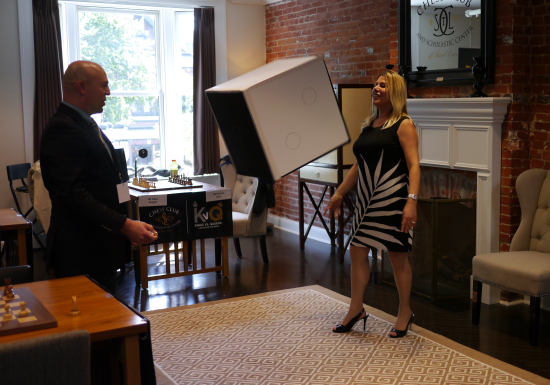 Zuvor durfte Amerikas Schachförderin Nr. 1, Susan Polgar, mit einem Riesenwürfel die Startposition auslosen