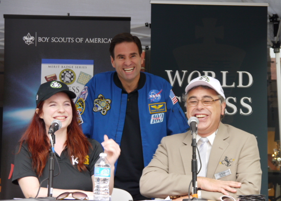 Die Kommentatoren WGM Jennifer Shahade und GM Yasser Seirawan mit dem schachbegeisterten NASA-Astronauten Greg Chamitoff - Die gute Laune ist keine Show, sondern herzlich und echt! Selten sah man Live-Übertragungen vom Schach, bei denen so viel gelacht wurde. Großartig!