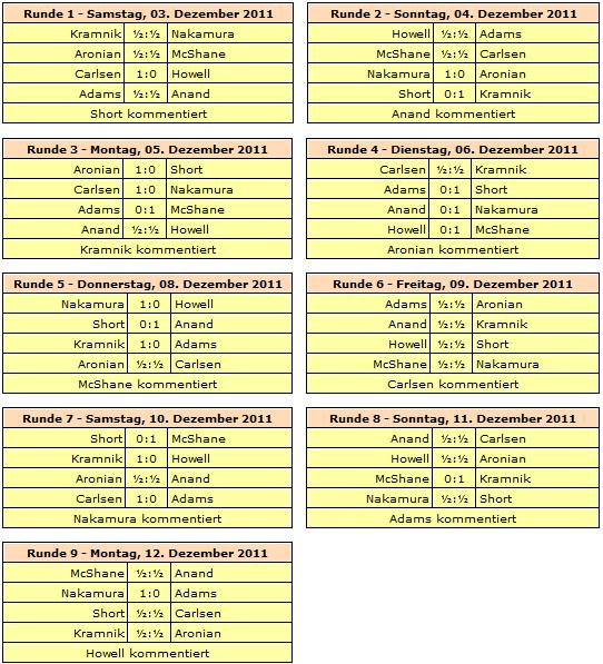 Michael Adams wurde enttäuschend Letzter und auch Levon Aronian wird mit sechsten Rang nicht zufrieden sein