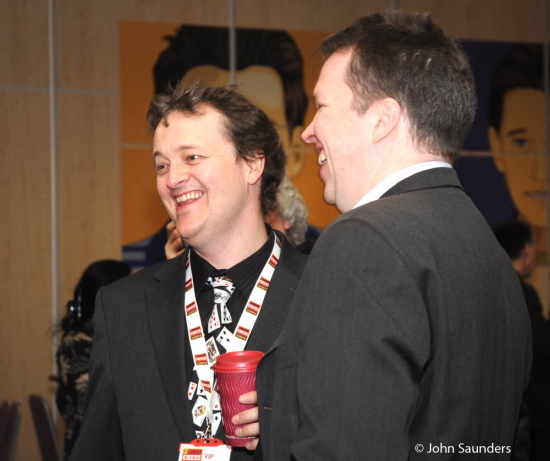 Julian Hodgson und Nigel Short mit Späßchen vor dem Start der Runde