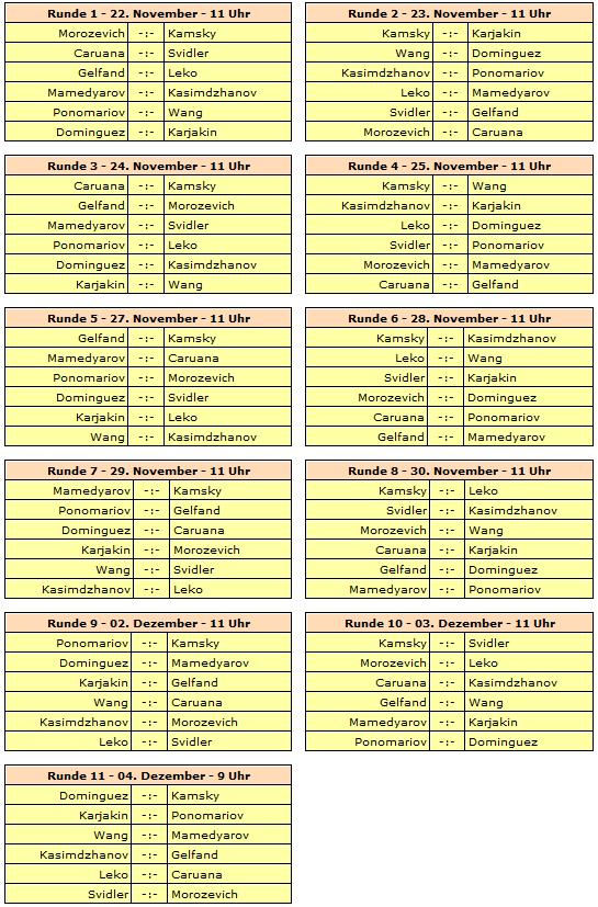 Paarungen für den FIDE Grand Prix in Tashkent