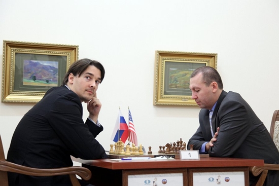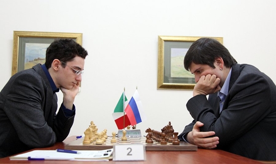22.11.2012 - Unterschiedlicher hätten die beiden entschiedenen Partien der ersten Runde des FIDE Grand Prix in Taskent nicht sein können. Während Sergey Karjakin gegen Leinier Dominguez mit Schwarz im Mittelspiel Vorteil erlangte und diesem sukzessive zu einem klaren Sieg ausbaute, musste Alexander Morozevich in schwieriger Lage auf einen Aussetzer von Gata Kamsky hoffen, der dann auch tatsächlich folgte. Alle anderen Partien endeten ausgekämpft im Remishafen, so dass Karjakin und Morozevich nun gemeinsam führen. Die zweite Runde beginnt am Freitag um 11 Uhr.
