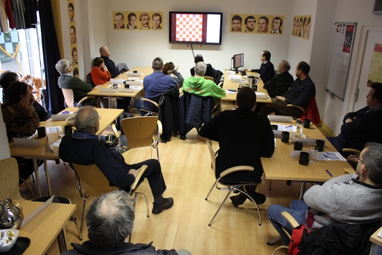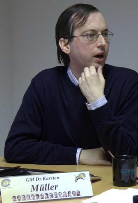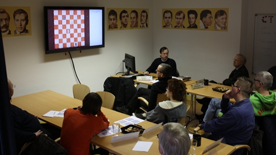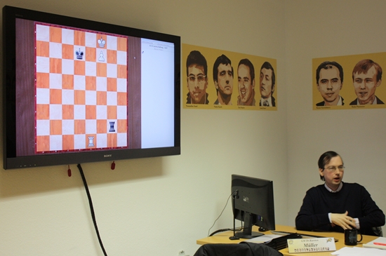 17.12.2012 - Wenn GM Dr. Karsten Müller ruft, dann kommen sie von nah und fern. So geschehen am vergangenen Wochenende im Chess Tigers Training Center in Bad Soden. Deutschlands größter Endspielexperte lud zu einem zweitägigen Seminar mit dem Thema "Theoretische Endspiele für den Praktiker" und fast zwanzig Teilnehmer klebten an den Lippen des Hamburgers und folgten auf dem großen Bildschirm gebannt dessen Ausführungen. Ein gesunder Mix aus Lehren, Diskutieren, Analysieren, Lösen von Übungen und persönlichen Gesprächen in den Pausen macht Müller bei Spielern sämtlicher Spielstärken so beliebt. Dazu kommt noch die gewohnte Gastfreundlichkeit von CTTC-Chef Hans-Walter Schmitt, der dafür Sorge trug, dass es nie an warmen und kalten Getränken sowie etwas Nervennahrung mangelte. Keine Frage, dass es auch 2013 wieder das eine oder andere Seminar mit Müller geben wird. Wer allerdings nicht so lange warten möchte und kann, für den hat die Chess Tigers Universität dessen brandneuen Kurs "Grundkurs Endspiele - Theorie für Praktiker" im Angebot, mit welchem Sie sich Woche für Woche fit fürs Endspiel machen können.