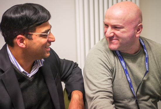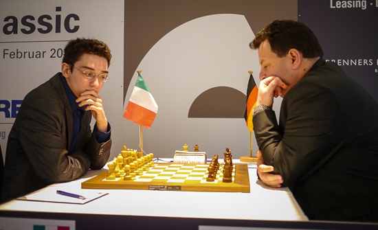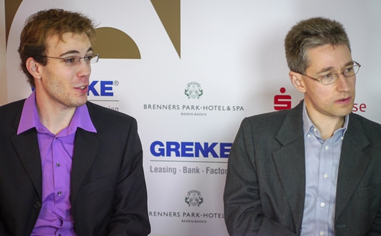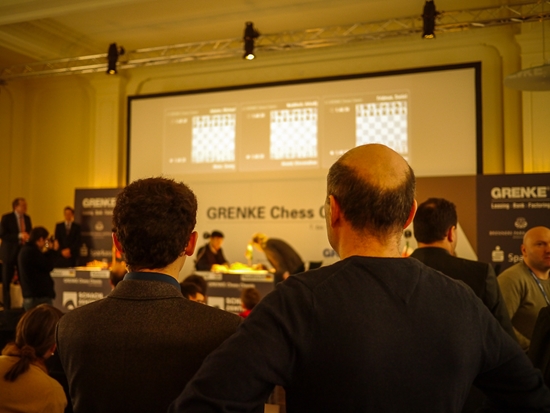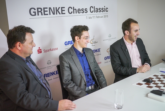 11.02.2013 - Das Highlight der fünften Runde der GRENKE Chess Classic 2013 war der sehenswerte Sieg von Weltmeister Viswanathan Anand gegen Arkadij Naiditsch. Als sämtliche Experten noch rätselten, wie Weiß seine schöne Stellung in etwas Zählbares verwandeln könnte, bastelte der Inder bereits an einem schönen Figurenfang. Naiditsch suchte sein Heil noch in einem Königsangriff, doch diesen wehrte Vishy souverän ab und fuhr nach 38 Zügen den ersten Sieg im laufenden Wettbewerb ein. Hätte Daniel Fridman seine starke Russisch-Vorbereitung gegen Fabiano Caruana in einen vollen Punkt verwandelt, es hätte gleich drei Führende gegeben. Aber der Italiener entkam um Haaresbreite ins Remis und führt so weiterhin mit einem halben Punkt - jetzt vor Anand. Auch Georg Meier erspielte sich als Weißer eine ansprechende Stellung gegen Michael Adams, fasste dann allerdings nicht den besten Plan und ließ das Spiel zum Remis verflachen. Am Faschingsdienstag dürfen sich die Spieler im wunderschönen Baden-Baden ausruhen, bevor am Mittwoch um 15:00 Uhr die Rückrunde startet.