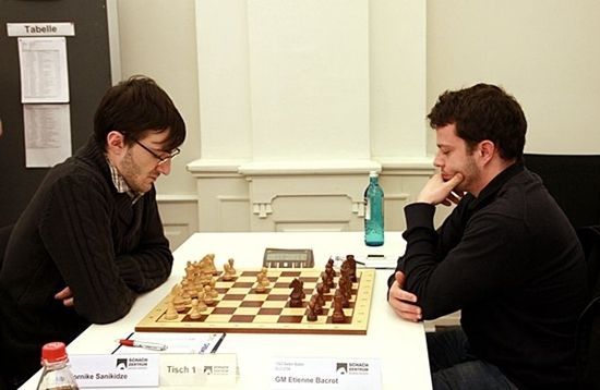 Das Spitzenduell der Schlussrunde im ELO-Open: Tornike Sanikidze gegen Etienne Bacrot