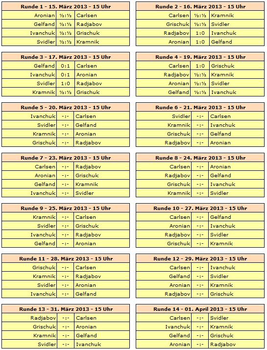 TopTurniere Candidates 2013 - Carlsen zieht mit Aronian gleich