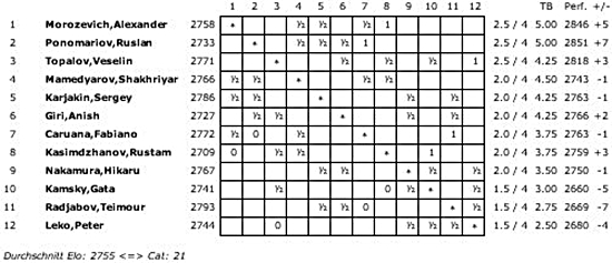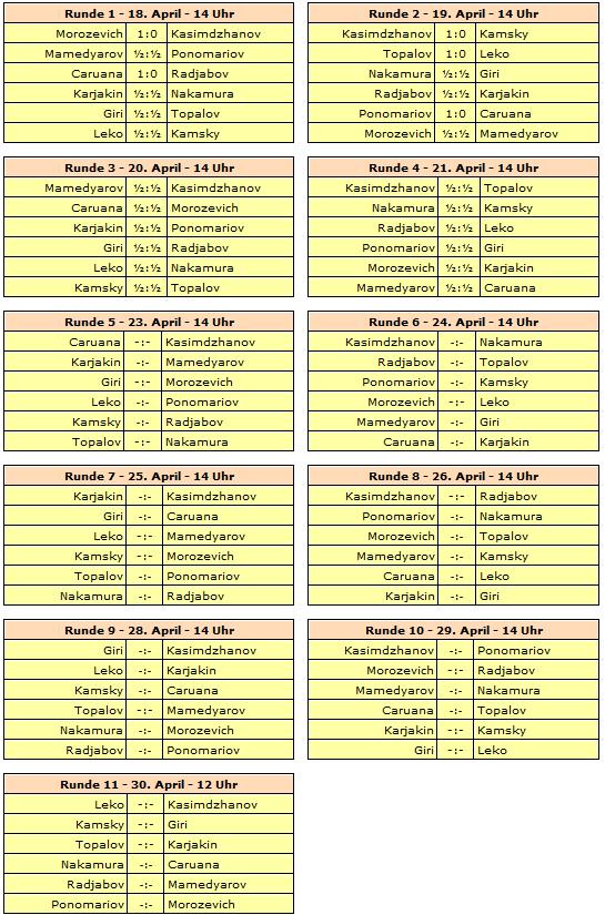 TopTurniere FIDE GP 2012/13 - Tote Hose 2 Wieder sechs Remis in Runde 4 Montag ist Ruhetag