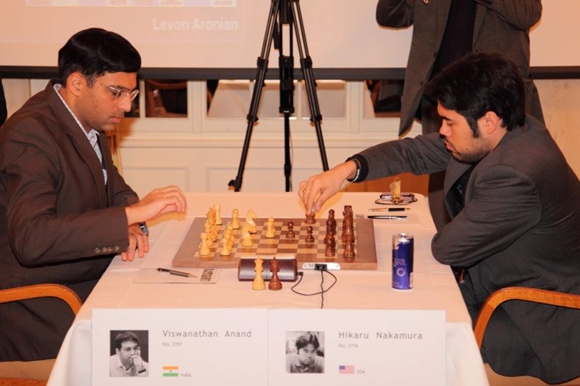 17.02.2015 - Schon früh hatte viel dafür gesprochen, dass das heutige Duell bei der Zürich Chess Challenge zwischen Viswanathan Anand und Hikaru Nakamura das entscheidende für den Turniersieg sein würde. Kein Kunststück, hat doch niemand außer ihnen eine Partie gewonnen bisher. Okay, der Turniersieg ist natürlich noch nicht vergeben, aber es spricht vor der morgigen Schlussrunde eine Menge für Anand. Ausgangs der bekannten Theorie baute Nakamura sukzessive ab, und Vishy baute seinen Vorteil bis zum forcierten Matt in Zug 41 aus. "Traditionell" enden in diesem Jahr in Zürich pro Runde zwei Partien unentschieden, so auch heute. Und so führt Anand hauchdünn vor Nakamura die Tabelle an, gefolgt von Remiskönig Kramnik. Für die zweite Tabellenhälfte geht es zum Abschluss um Schadensbegrenzung. Vishy wird Schwarz gegen Karjakin haben, Nakamura Weiß gegen Aronian wie auch Caruana gegen Kramnik. Auch die letzte Runde beginnt um 15 Uhr. Und vergessen Sie nicht, dass das Event damit nicht endet! Am Donnerstag gibt es noch ein schöne Schnellturnier mit allen Stars.