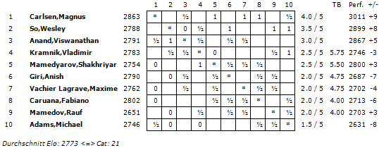 Der Turnierschnitt beträgt 2773, was der Turnierkategorie 21 entspricht.