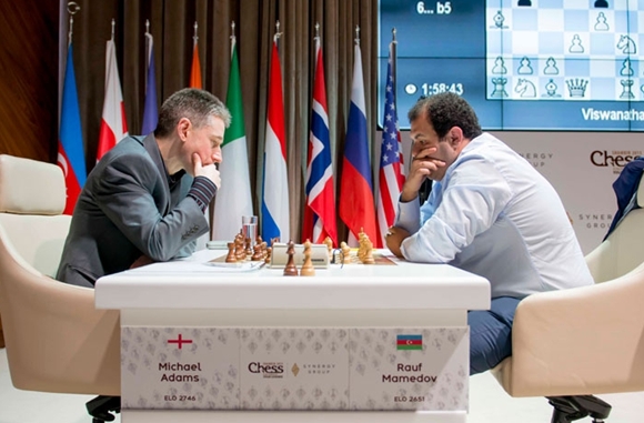 Rauf Mamedov musste sich das Remis gegen Michael Adams zwar schwer verdienen, aber ernste Verlustgefahr kam nie auf