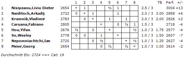 Mit einem ELO-Schnitt von 2724 wurde in diesem Jahr die Turnierkategorie 19 erreicht.