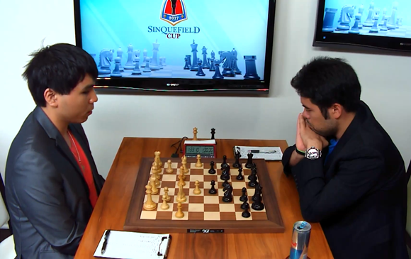 Wesley So eroberte zwar einen von Hikaru Nakamuras Bauern, aber auch er konnte diesen nicht verwerten