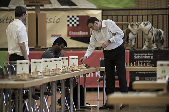 Simultan GM Michael Prusikin - Shounak Mukherjee endlich ein starker Gegner 1:0