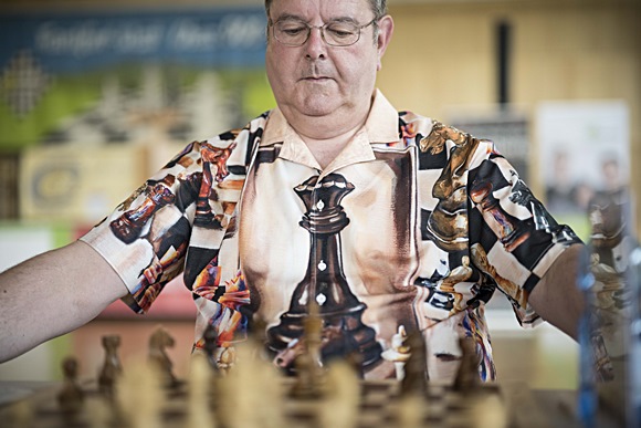 Simultan GM Michael Prusikin - Michael Paap mit besonderen Hemd, trotzdem 1:0