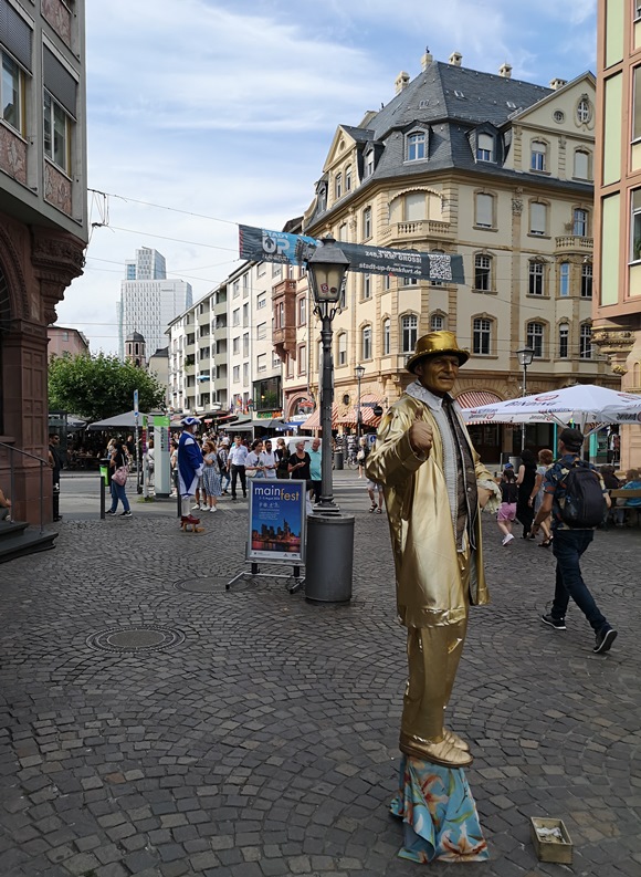 Ein imposanter Blick auf die Europäische Zentralbank, Wasser, Schifffahrt und Kirchen ... vom Eisernen Steg aus gesehen.